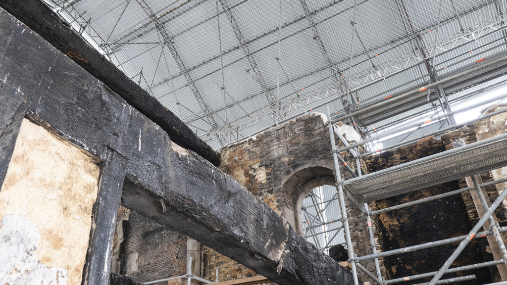 Enregistrement photogrammétrique des restes de la maison à pan de bois, dite de « la Mère Pourcel », détruite par un incendie en juin 2019.