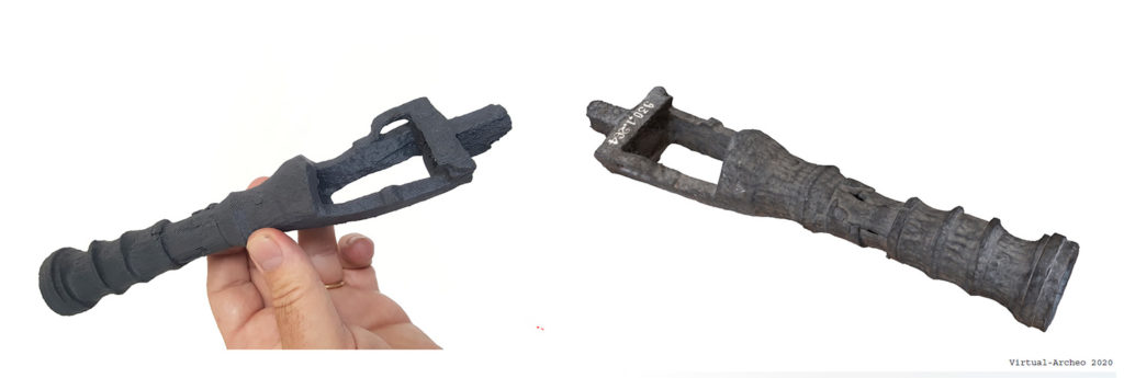 Dans le cadre de recherches dirigées par Jocelyn Martineau (DRAC Pays de la Loire) et Marion Seure (Inventaire Général Pays de la Loire) sur les systèmes d’artillerie du château de Lassay, le musée Dobrée / Grand Patrimoine de Loire-Atlantique nous a permis d’accéder à ses réserves afin de numériser certaines pièces du XVe et XVIe siècle. Les modèles 3D produits par photogrammétrie ont ensuite été imprimés pour tester différentes propositions de restitutions.