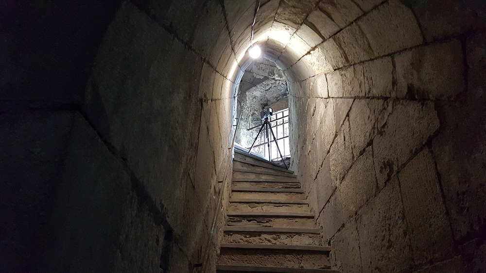 PhotogrammétrieScan laser Angers 20 février 2020 Yann Bernard Numérisation de la salle comtale et de la tour 17 du château d’Angers. Escalier de la tour 17. Tour 17