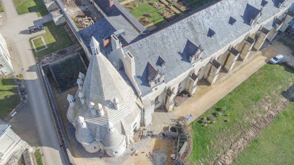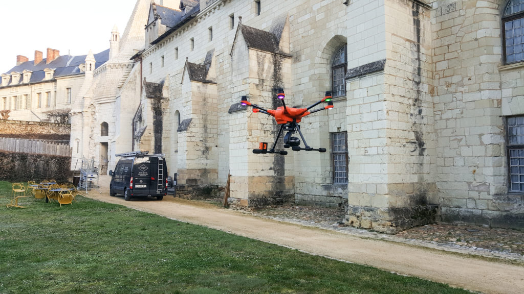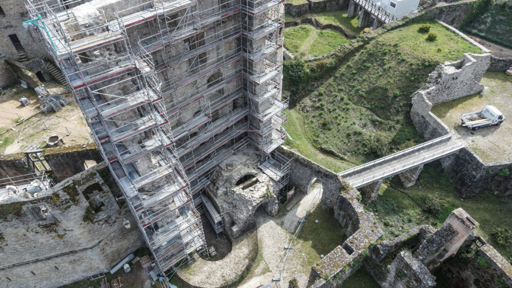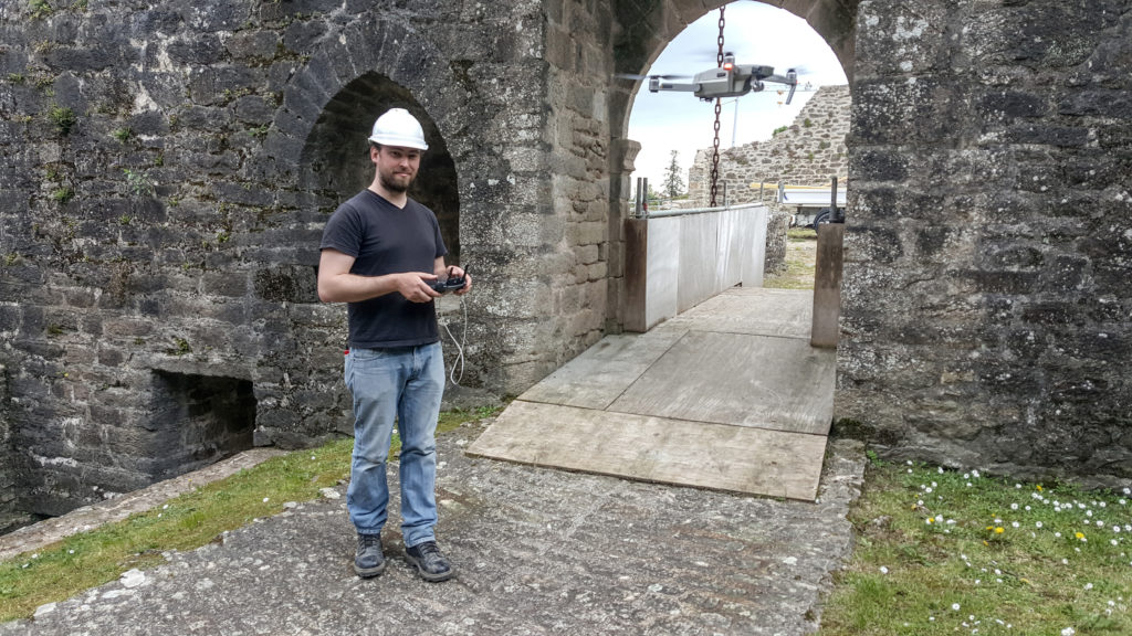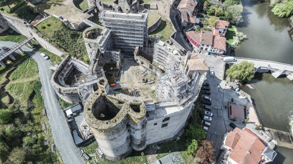 Clisson – la château échafaudé vu depuis le nord.Clisson – la château échafaudé vu depuis le sud.Clisson – le logis porte vu depuis le nord.Vol en mode « indoor » du Yuneec H520 dans sa bumper cage en carbone.Visite amicale de Thibaut Peres et de son Mavic.