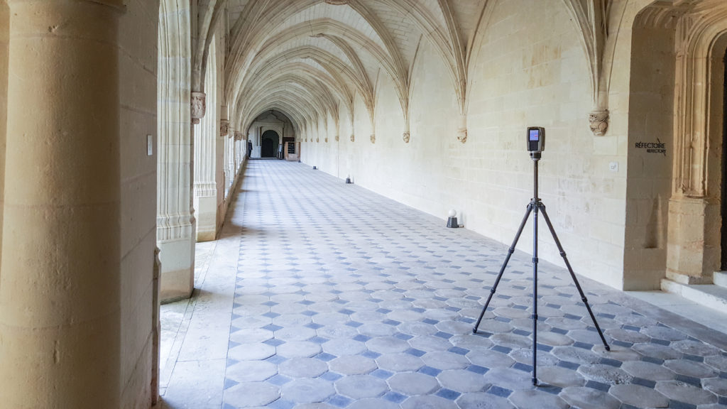 Numérisation du réfectoire attenant aux cuisines romanes dans le cadre des opérations archéologiques menées par Jean-Yves Hunot. Technique mixte laser/photogrammétrie. Les cuisines avaient été également numérisées avant les travaux de restauration réalisés à partir de 2017.