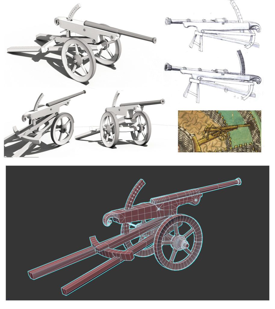 Dans le cadre de ce travail, nous proposons de restituer un fauconneau sur affût à roues, à partir du modèle conservé au musée Dobrée à Nantes (avec leur aimable autorisation) et des traités militaires de la fin du XVe siècle.