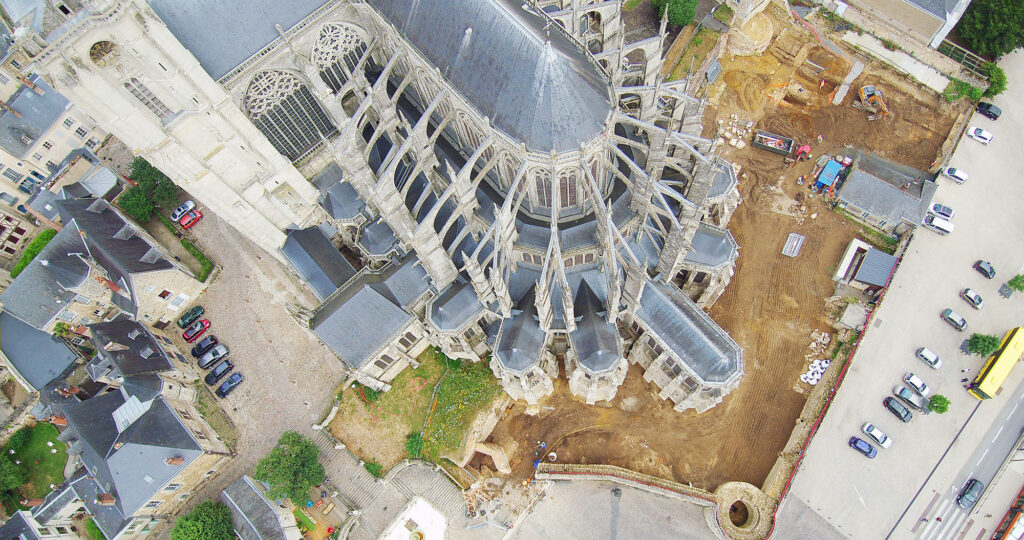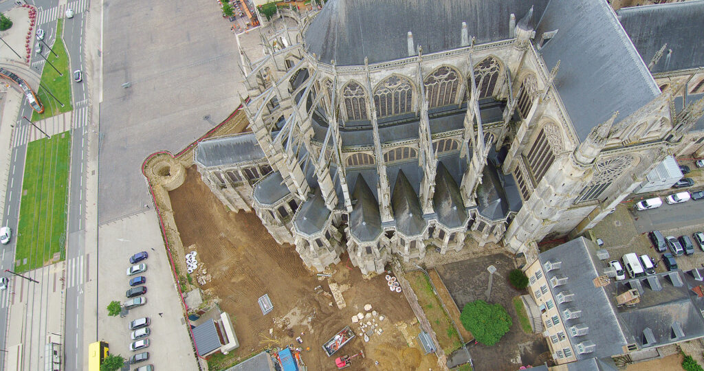 PhotogrammétrieScan laser Le Mans 25 juin 2018 Numérisation des fouilles au chevet de la cathédrale. Photogrammétrie et laser. Responsable scientifique : Stéphane Augry Photo aérienne du chevet de la cathédrale Photo aérienne du chevet de la cathédrale